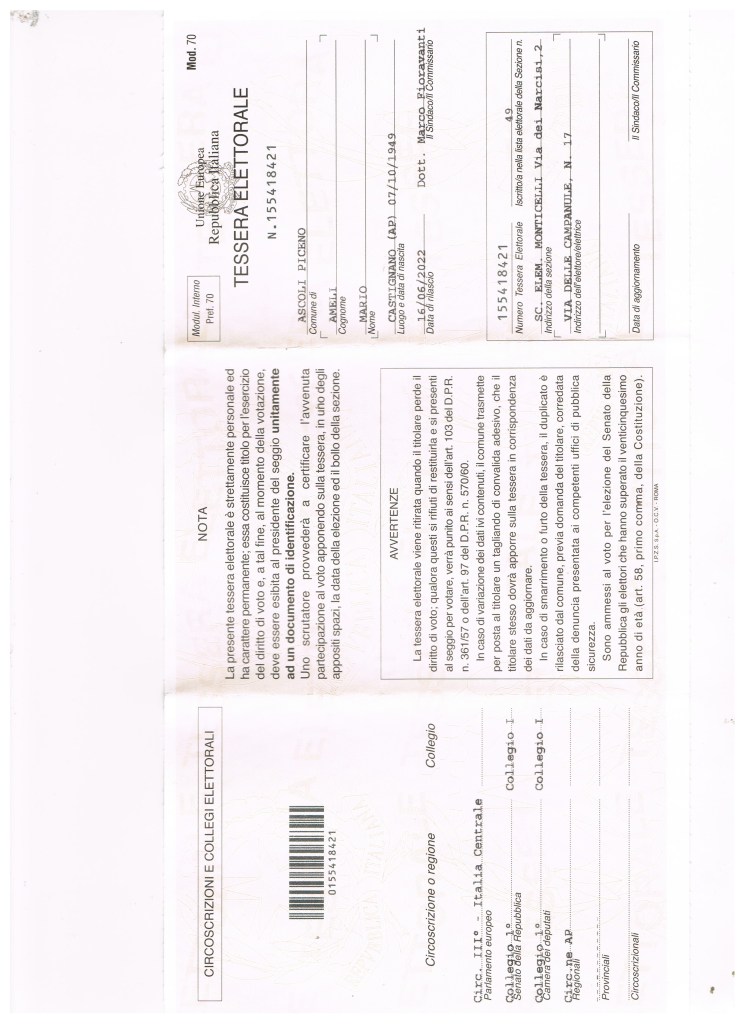 01191992231020 01191992231020 TESSERA ELETTORALE AMELI MARIO Condividi: Condividi su X (Si apre in una nuova finestra) X Condividi su Facebook (Si apre in una nuova finestra) Facebook Mi piace Caricamento...