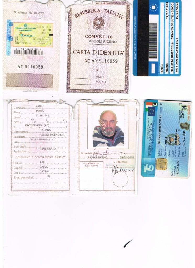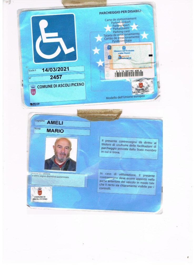 DOCUMENTI AMELI MARIO PATENTE CARTA IDENTITA’ CODICE FISCALE PERMESSO DISABILE
